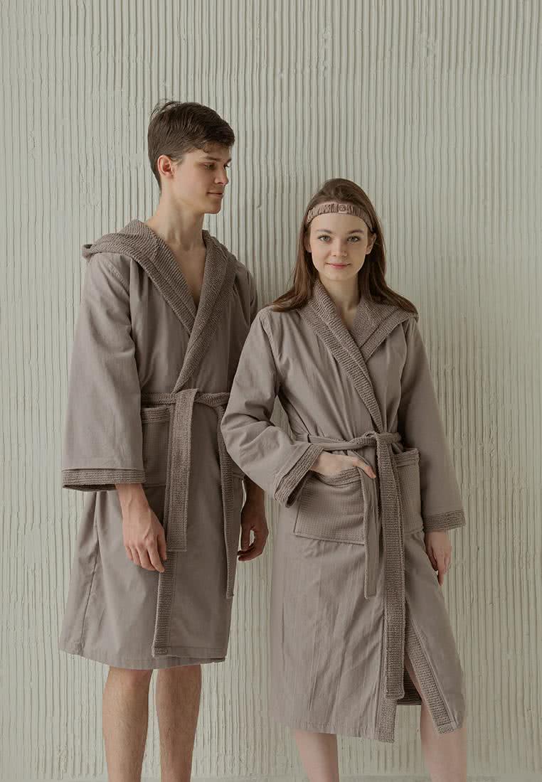 Материал: 100% хлопок, внешняя сторона халата - вареный хлопок, внутренняя - махра.Плотность: 350 гр/м2. Халат сшит из двух хлопковых тканей: внутрення часть - это вафельно-махровое полотно, снаружи - вареный хлопок. Благодаря такому пошиву уходит главная проблема махровых халатов - многочисленные зацепки и вытянутые петли махры. Ведь поверх махровой ткани в халате COZY HOME - чехол из трендового вареного хлопка, что исключает такую проблему. Зато внутри халата мягкая хорошо впитывающая воду после душа - махра. У халата есть капюшон, необходимое и невероятное уютное дополнение к вашему комфорту. Два кармана и пояс тоже сшиты из двух тканей: махра и вареный хлопок, что придает законченный дизайнерский вид халату. Есть петелька для удобного подвешивания его на крючок в ванной комнате. Дизайн и цвета - абсолютно универсальные для мужчин и женщин!