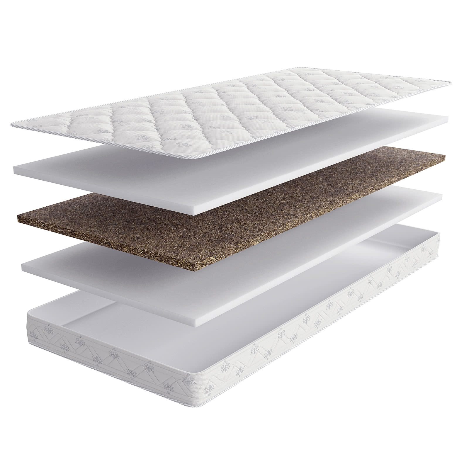 Беспружинный детский матрас с отличными анатомическими свойствами, благодаря использованию кокосовой койры и натуральной пены Ergoflex. Рекомендуемая нагрузка до 50 кг. Натуральная пена на водной основе Ergoflex (3 см). Латексированная кокосовая койра (3 см). Натуральная пена на водной основе Ergoflex (3 см). Кокосовая койра - великолепный натуральный материал. Обладает такими важными для здоровья человека свойствами как антиаллергенность, антистатичность, гигроскопичность. Благодаря жесткости кокоса, матрас обладает высокими анатомическими свойствами. Ergoflex – недеформируемая, эластичная пена, которая позволяет матрасу хорошо адаптироваться под тело ребенка. Чехол хлопковый жаккард. Наполнение стежки чехла - файбер (300 г/м.кв.) Высота - 10 см.