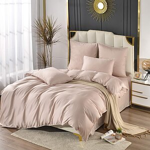 Материал: тенсель.Плотность ткани: 300 ТС. Евро-стандарт: пододеяльник 200х220 см, простыня 230х250 см, наволочки 50х70 см – 2 шт., 70х70 см – 2 шт. Семейный: пододеяльник 160х220 см – 2 шт., простыня 230х250 см, наволочки 50х70 см – 2 шт., 70х70 см – 2 шт. Тенсел – это натуральная ткань из эвкалиптового волокна. На ощупь тенсел напоминает шелк – он такой же легкий и гладкий. Постельное бельё из такой ткани обладает хорошей терморегуляцией, поэтому его можно использовать в любое время года – не будет жарко или холодно. На данный момент, тенсел пользуется большой популярностью во всем мире. Однотонное постельное белье Андре – это огромная палитра разнообразных оттенков: от пастельных до ярких актуальных цветов. Комплект постельного белья декорирован контрастным кантом на пододеяльнике и наволочках, застегивается на молнию. Постельное белье Андре не только красивое, но и прочное, комплект выдерживает многочисленные стирки, не теряя при этом своей формы и ярких красок. За изделиями легко ухаживать: стирка при температуре не выше 30 градусов с минимальным отжимом. При правильном уходе вещь прослужит долгие годы, не потеряв форму и цвет. Застежка наволочек: молния Застежка пододеяльника: молния